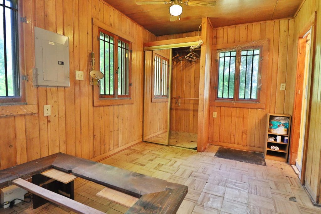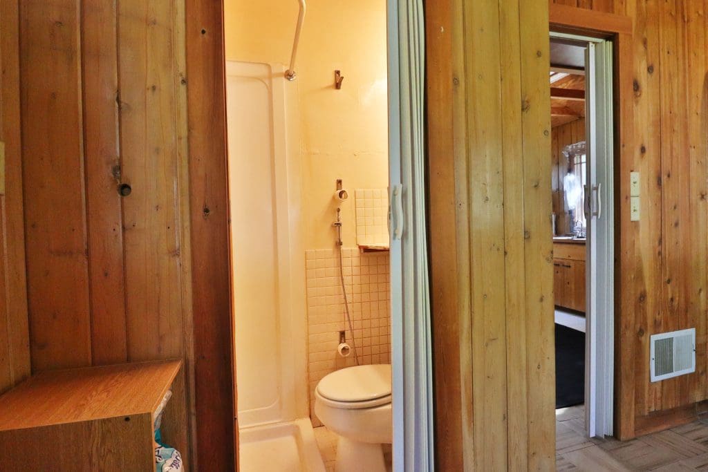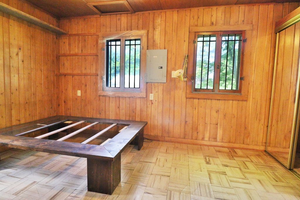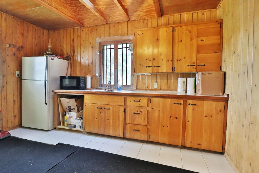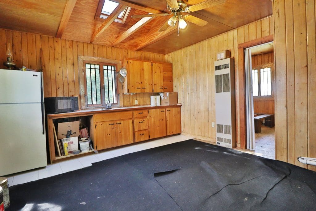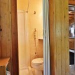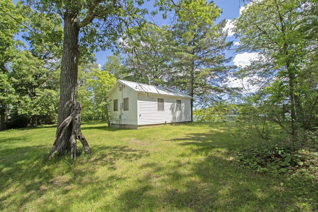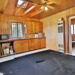 Don’t like the modest dimensions of the home deter from the classic charm and blank palette that is just waiting for all of your lake cabin ideas. Inside, we find a combo living/dining/kitchen area highlighted with vaulted ceilings and a 15×10 bedroom with a private bath.