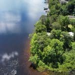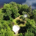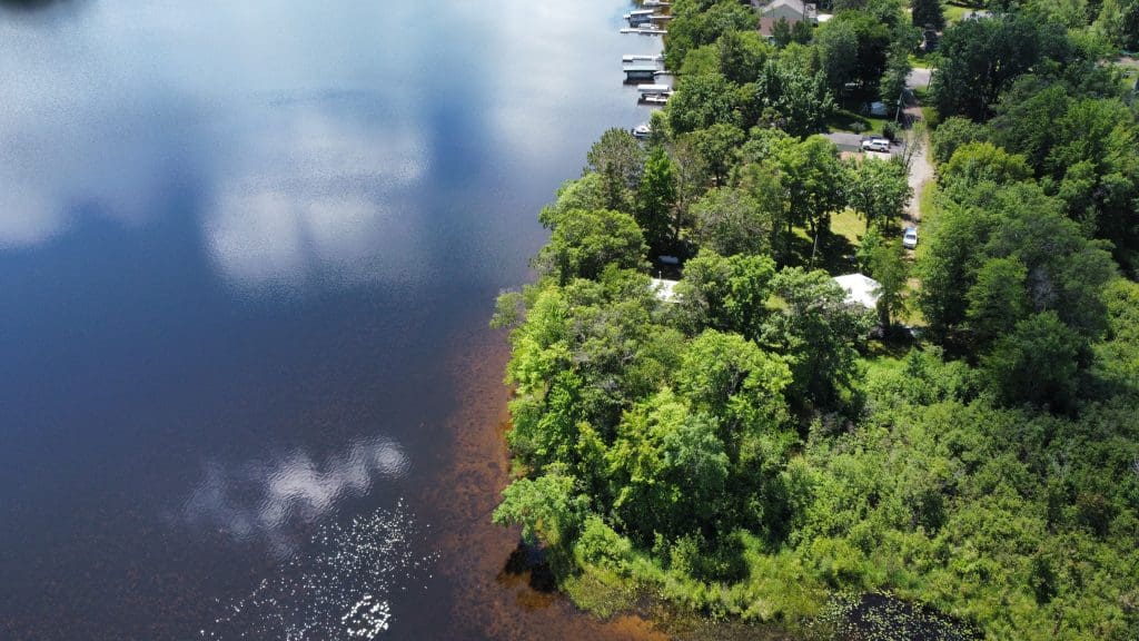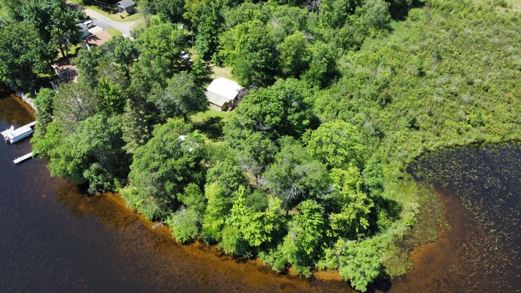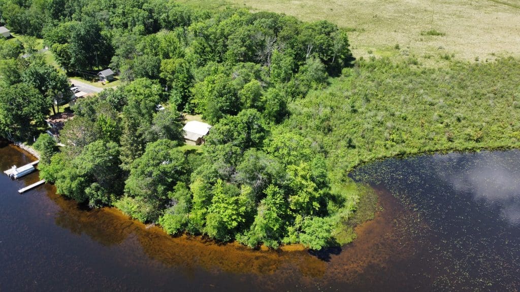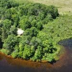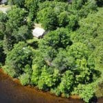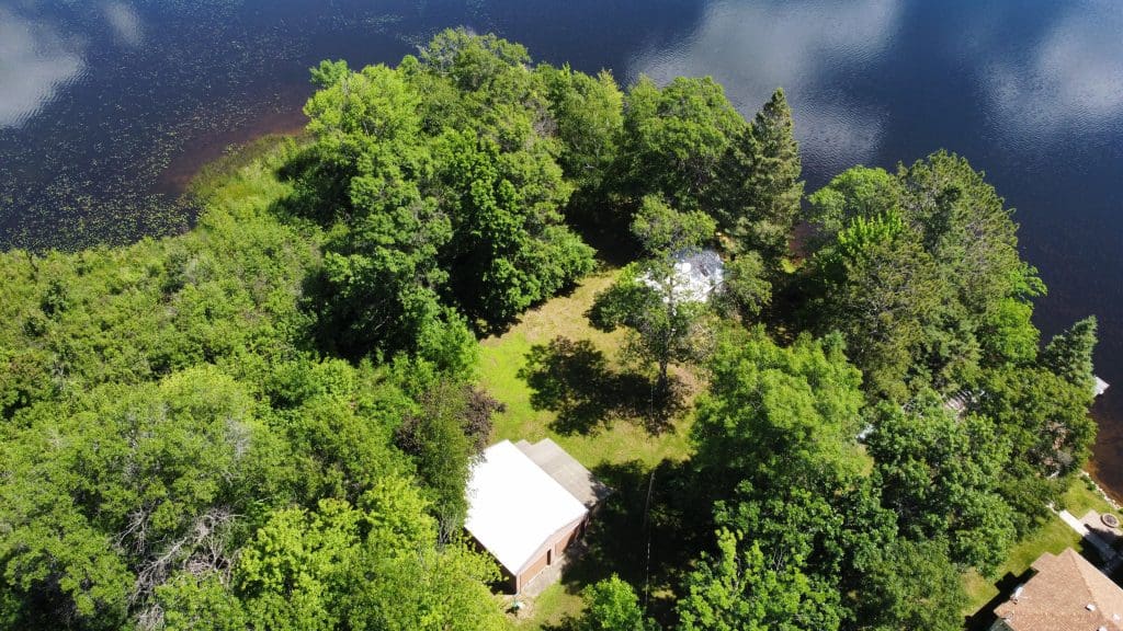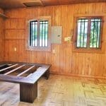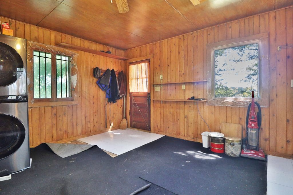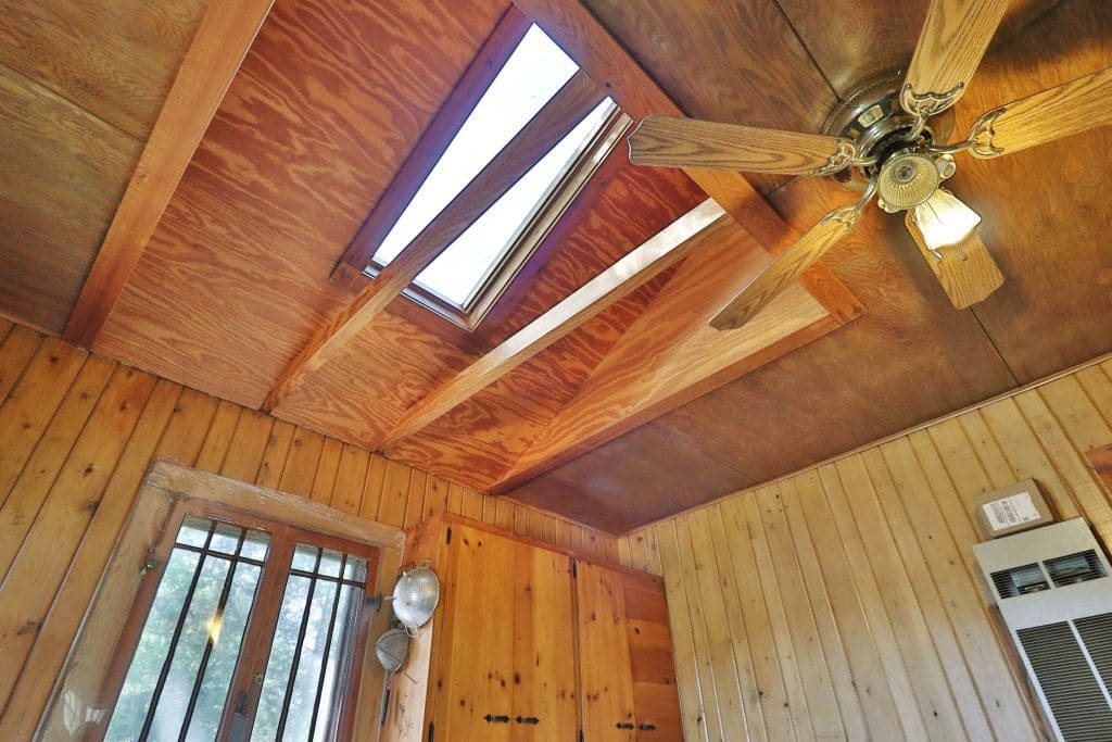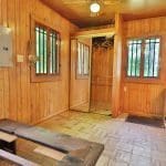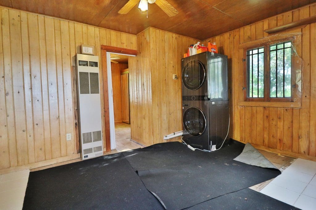 Don’t like the modest dimensions of the home deter from the classic charm and blank palette that is just waiting for all of your lake cabin ideas. Inside, we find a combo living/dining/kitchen area highlighted with vaulted ceilings and a 15×10 bedroom with a private bath.
